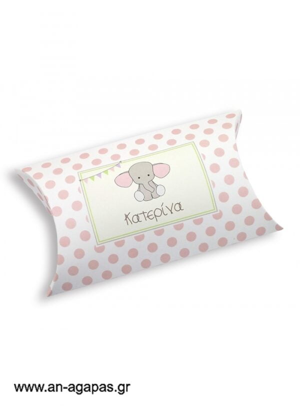 Μπομπονιέρα βάπτισης κουτί μπομπέ Baby Pink Elephant