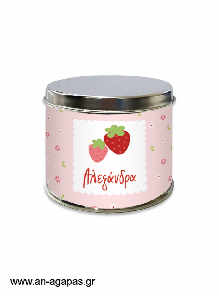 Μπομπονιέρα βάπτισης μεταλλικό κουτί Strawberry