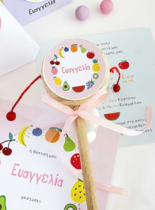 Μπομπονιέρα Βάπτισης Ξύλινο Τυμπανάκι Fruits