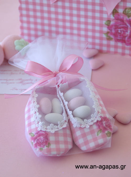 Μπομπονιέρα Βάπτισης Υφασμάτινα Παπουτσάκια