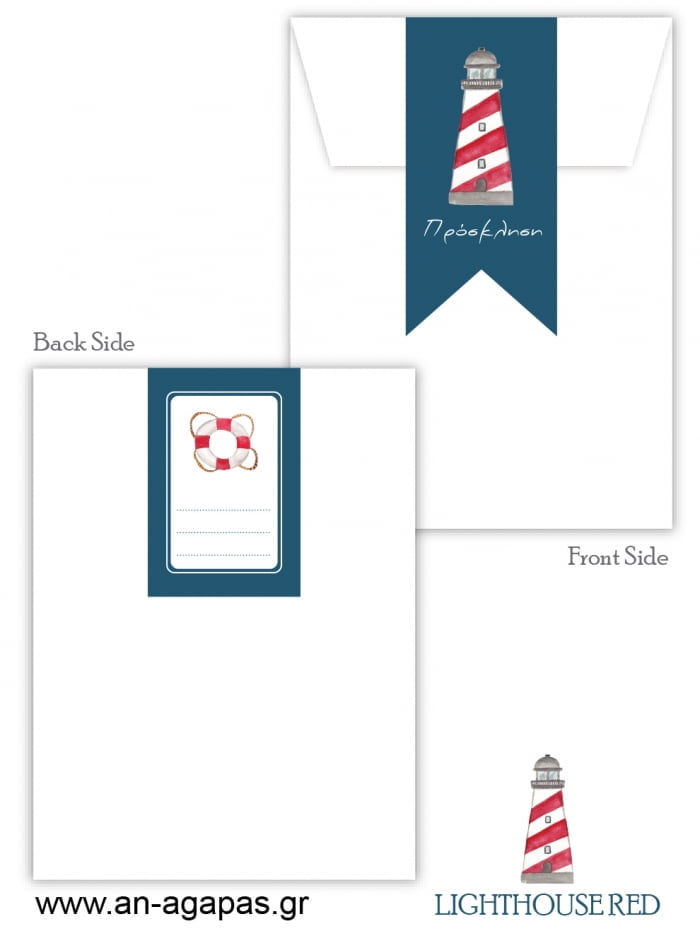 Χειροποίητο Προσκλητήριo βάπτισης με θέμα Lighthouse Red. Τα μοναδικά Προσκλητήριoα με εκτύπωση και στις δύο όψεις και layer με το ίδιο θέμα μέσα στο φάκελο.