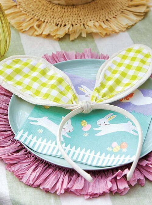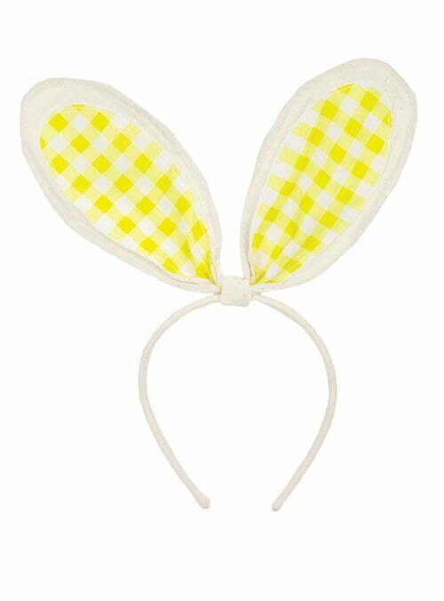 Υφασμάτινη στέκα αυτιά λαγού με κίτρινο gingham σχέδιο.