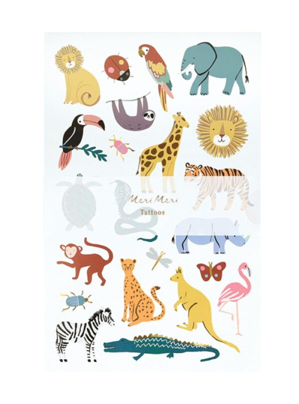 Προσωρινά τατουάζ με θέμα τα άγρια ζώα σε διάφορα σχέδια.