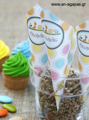 Η τουρτιέρα είναι από φελιζόλ και καλύπτεται με χάρτινο banner διακόσμησης. Μπορείτε να το χρησιμοποιήσετε για γλειφιτζούρια, cake pops ή ότι άλλο επιθυμείτε.