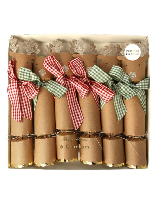 Crackers Reindeer With Gingham Bows, 6τμχ