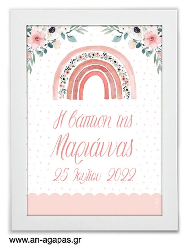 Ξύλινο κάδρο party sign με προσωποποιημένο θέμα Flower Rainbow.